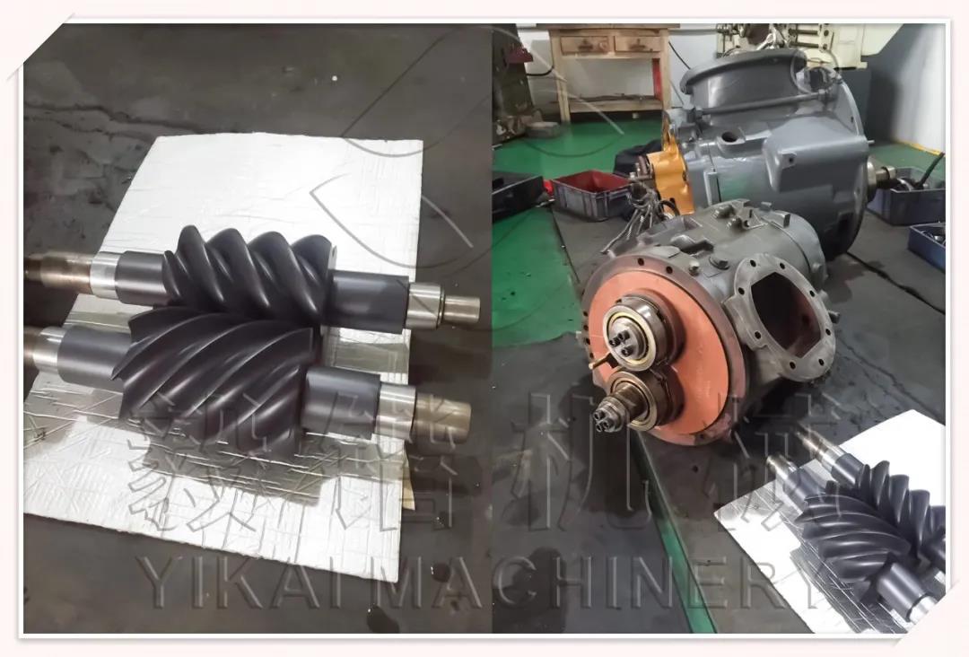 这样,螺杆与机体的配合直径间隙,随着二者的逐渐磨损而一点点加大。可是,由于机体前面机头和分流板的阻力没有改变,这就增加了被挤气体前进时的漏流量,即气体和润滑油从直径间隙处向进气方向流动量增加,长时间长了,慢慢地转子就会磨损起来。